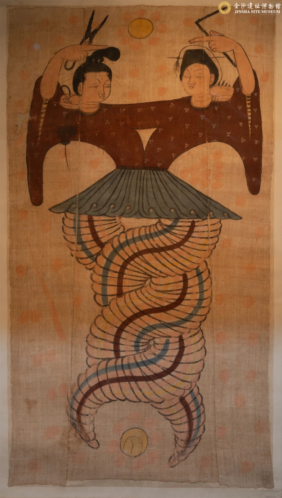 A colored linen painting depicting Fuxi and Nüwa, Tang Dynasty (618-907) [Photo/Official WeChat account of the Jinsha Site Museum]