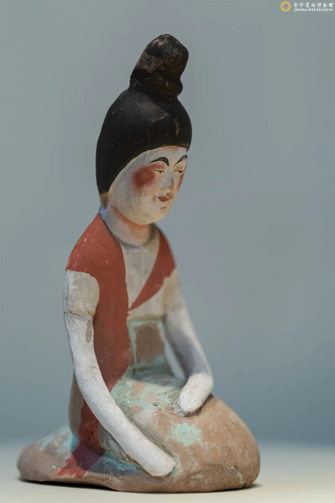 Painted clay figurine of a kneeling woman [Photo/Official WeChat account of the Jinsha Site Museum]