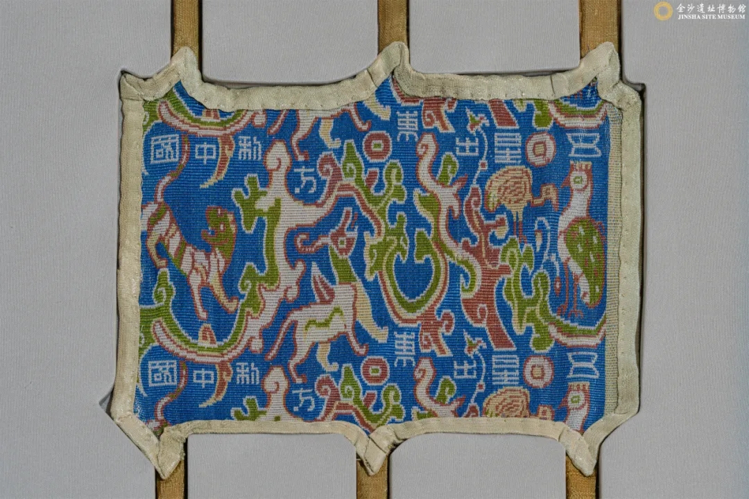Replica of the brocade armband woven with Chinese characters reading “Wuxing chu dongfang li Zhongguo”, meaning “five stars rise in the east and benefit the Central Kingdom” [Photo/Official WeChat account of the Jinsha Site Museum]