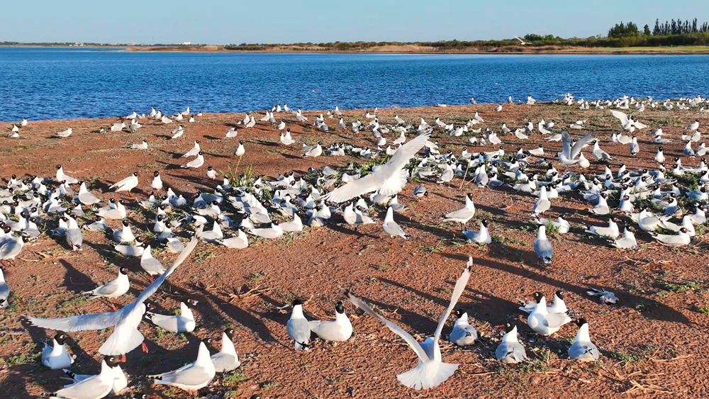 Thousands of relict gulls are hatching their eggs on the central island of Hongjiannao Lake, China's largest desert freshwater lake, in Yulin, Shaanxi province.