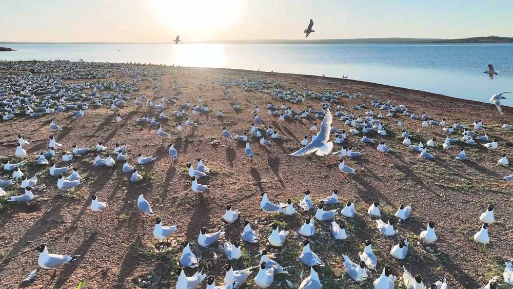 Thousands of relict gulls are hatching their eggs on the central island of Hongjiannao Lake, China's largest freshwater lake in desert, in Yulin, Shaanxi province. [Photo by Ma Teng/for chinadaily.com.cn]