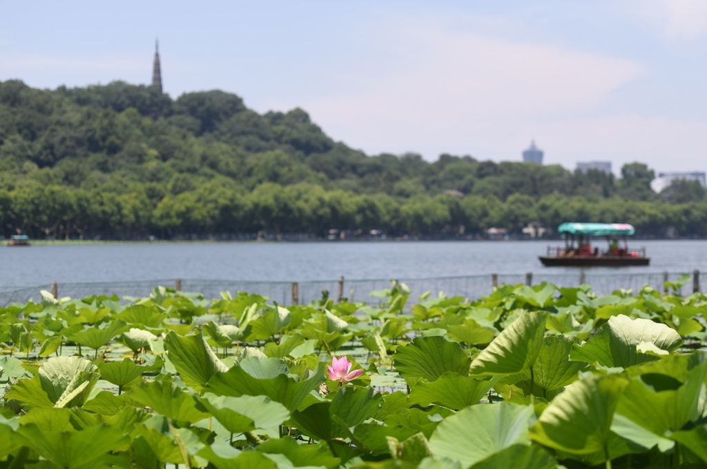 In early summer, the lotus flowers at West Lake in Hangzhou have began to bloom, creating beautiful scenery.
