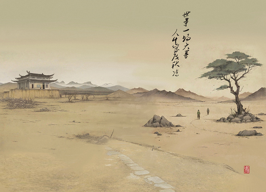 This illustration is inspired by the Northern Song Dynasty (960-1127) poem The Moon on the West River written by Su Shi (1037-1101). The poem, with its grand yet delicate portrayal of "worldly matters" and "life", evokes an image of a frontier battlefield. Although it does not fully depict the fallen leaves of autumn, the broken branches, withered leaves, and endless roads still convey a sense of desolation and loneliness.