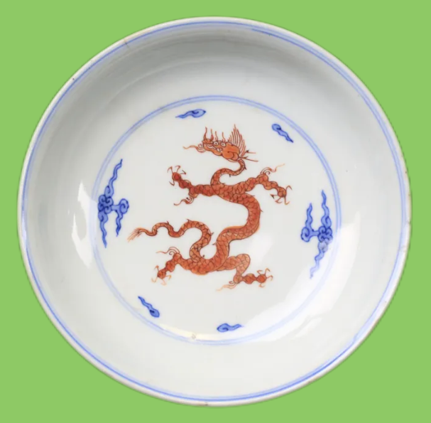 Ceramic plate with dragon and cloud motifs, Qing Dynasty [Photo/Official WeChat account of the Ningbo Museum]