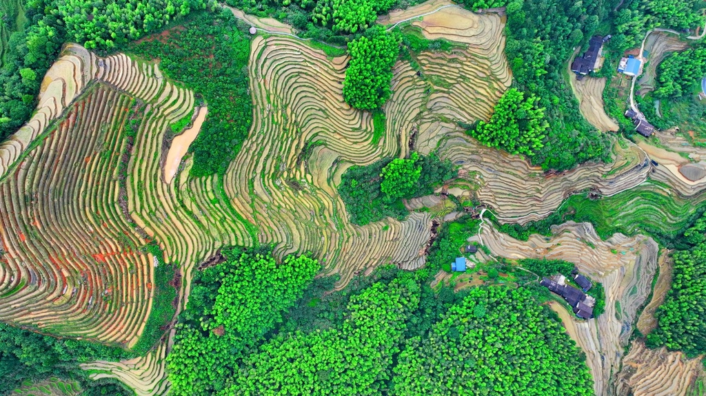 An aerial view of the Shangbao Terraces in Chongyi county, Ganzhou, Jiangxi province [Photo/IC]