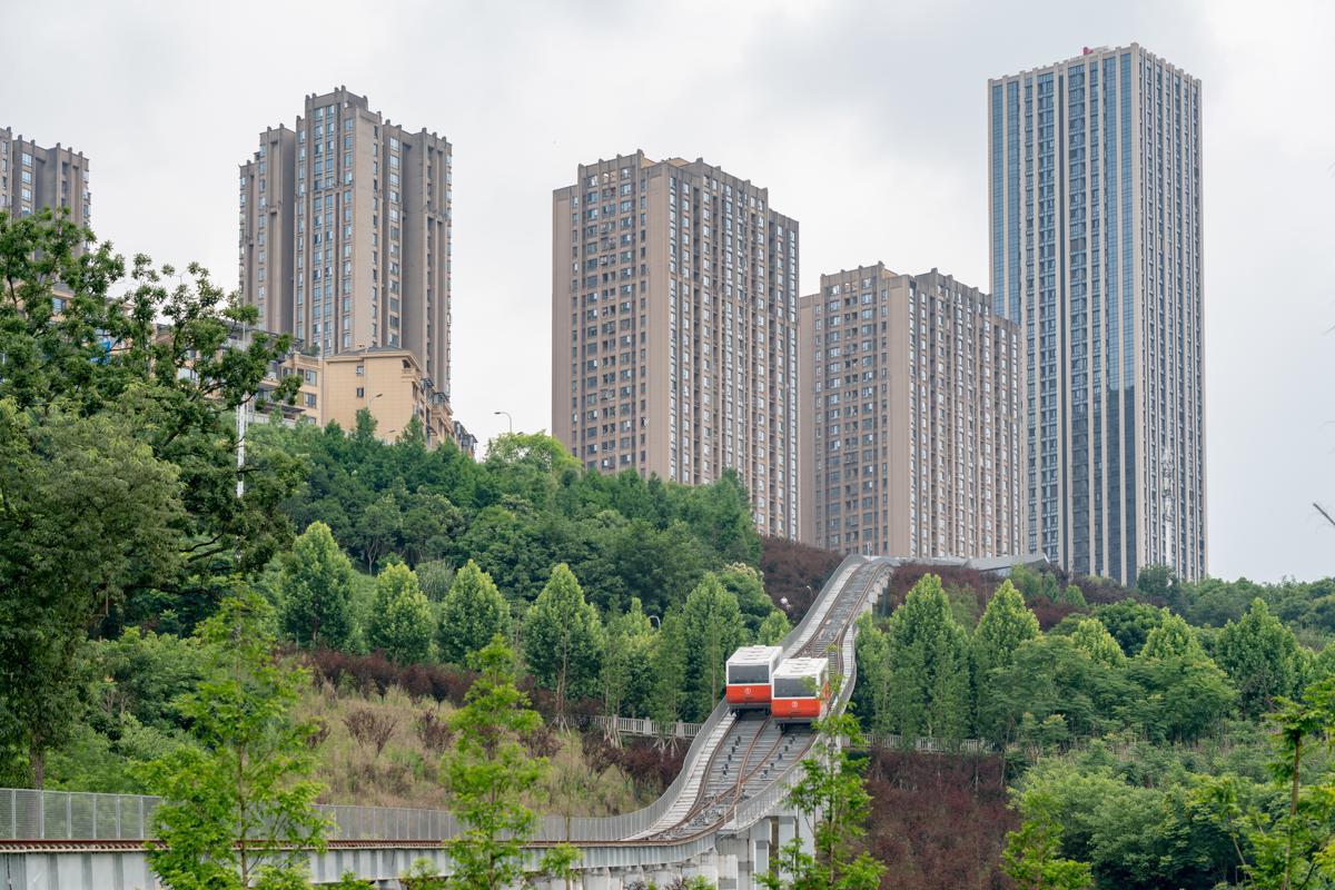 Constructed by Liangjiang Industrial Group, the line is 550 meters long and takes four minutes for a one-way trip. It passes through the park, providing passengers with a good view of the Jialing River, a tributary of the Yangtze River.