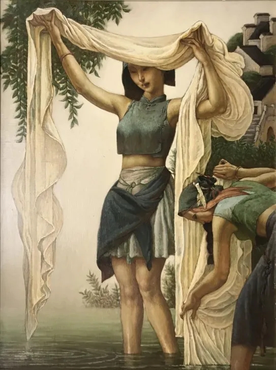 Washing Silk, oil painting, Qian Dajing [Photo/Official WeChat account of the Ming Gallery of Art]