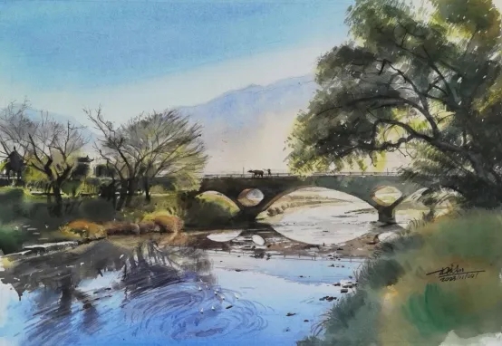 Sunrise and Pastoral Song, watercolor, Yang Maochuan [Photo/Official WeChat account of the Ming Gallery of Art]