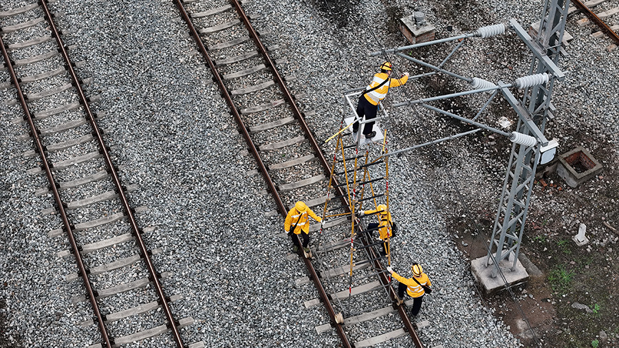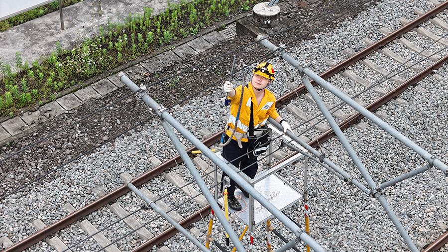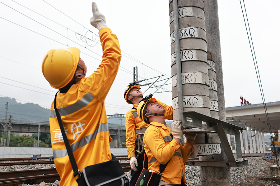 With the Dragon Boat Festival around the corner, Chongqing section of China Railway Chengdu Group Co Ltd has conducted a comprehensive inspection and maintenance of the overhead cables to ensure the safety of the train operation. [Photo by Ran Jie and Su Zhigang/For chinadaily.com.cn]
