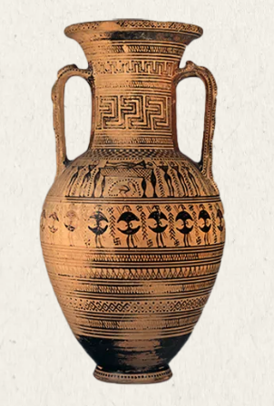 Pottery vase with two handles and geometrical motifs, 740-735 BC, from the collection of the National Archaeological Museum of Athens [Photo/Official WeChat account of the Nanjing Museum]
