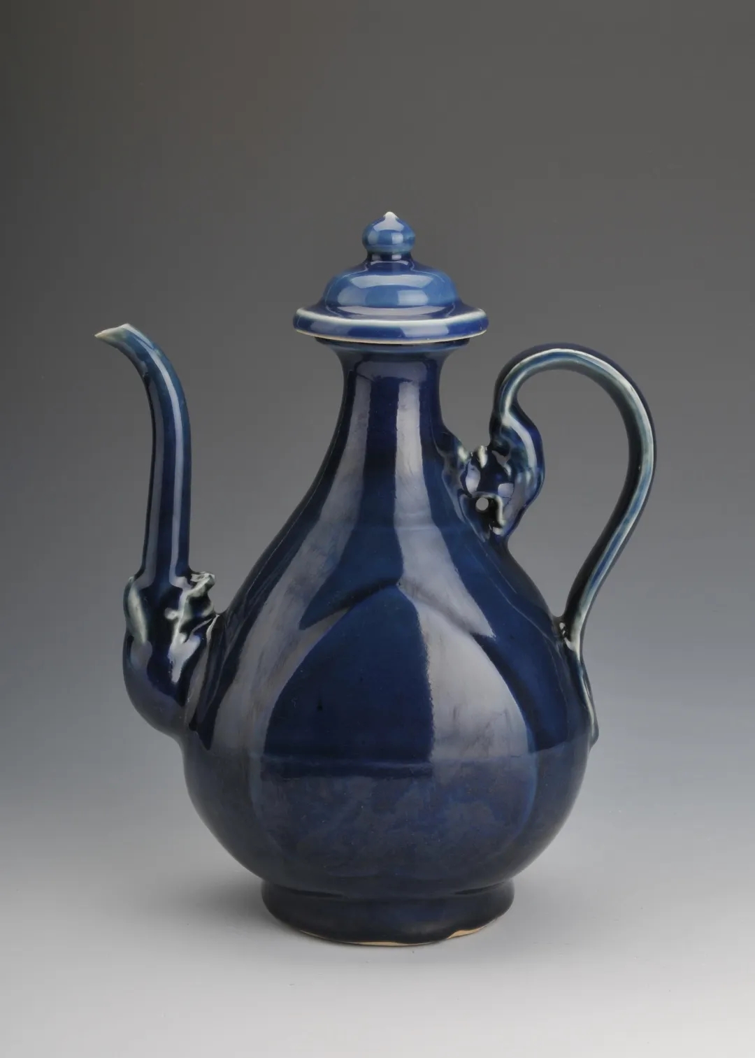 Blue-glazed ewer, Ming Dynasty (1368-1644) [Photo/Official WeChat account of the Wuhan Museum]