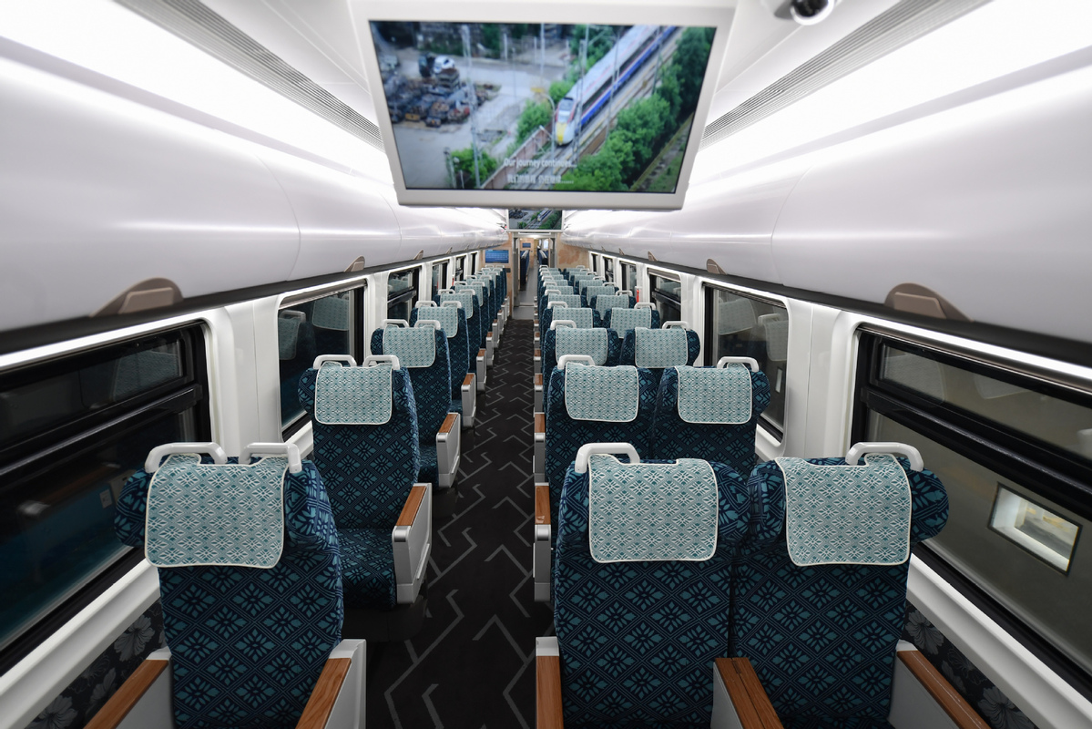 This photo taken on June 7, 2024 shows a carriage of an ETS3 train for Malaysia at CRRC Zhuzhou Locomotive Co Ltd in Zhuzhou, Central China's Hunan province. [Photo/Xinhua]