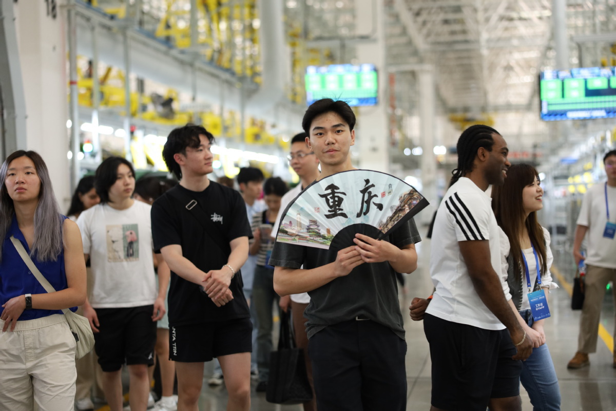 On Friday afternoon, 23 young representatives from various sectors across the United States, kicked off a five-day visit on the "Bridge of the Future" China-US Youth Exchange Program Flagship event by visiting the SERES Auto Super Factory in Southwest China's Chongqing. [Photo by Deng Rui/For chinadaily.com.cn]