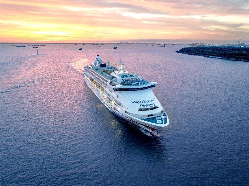 The Chinese-funded cruise ship Blue Dream Melody set sail from the International Cruise Terminal on the North Bund in Shanghai's Hongkou district on Thursday, embarking on a 5-day maiden voyage to Fukuoka, Japan. [Photo provided to chinadaily.com.cn]