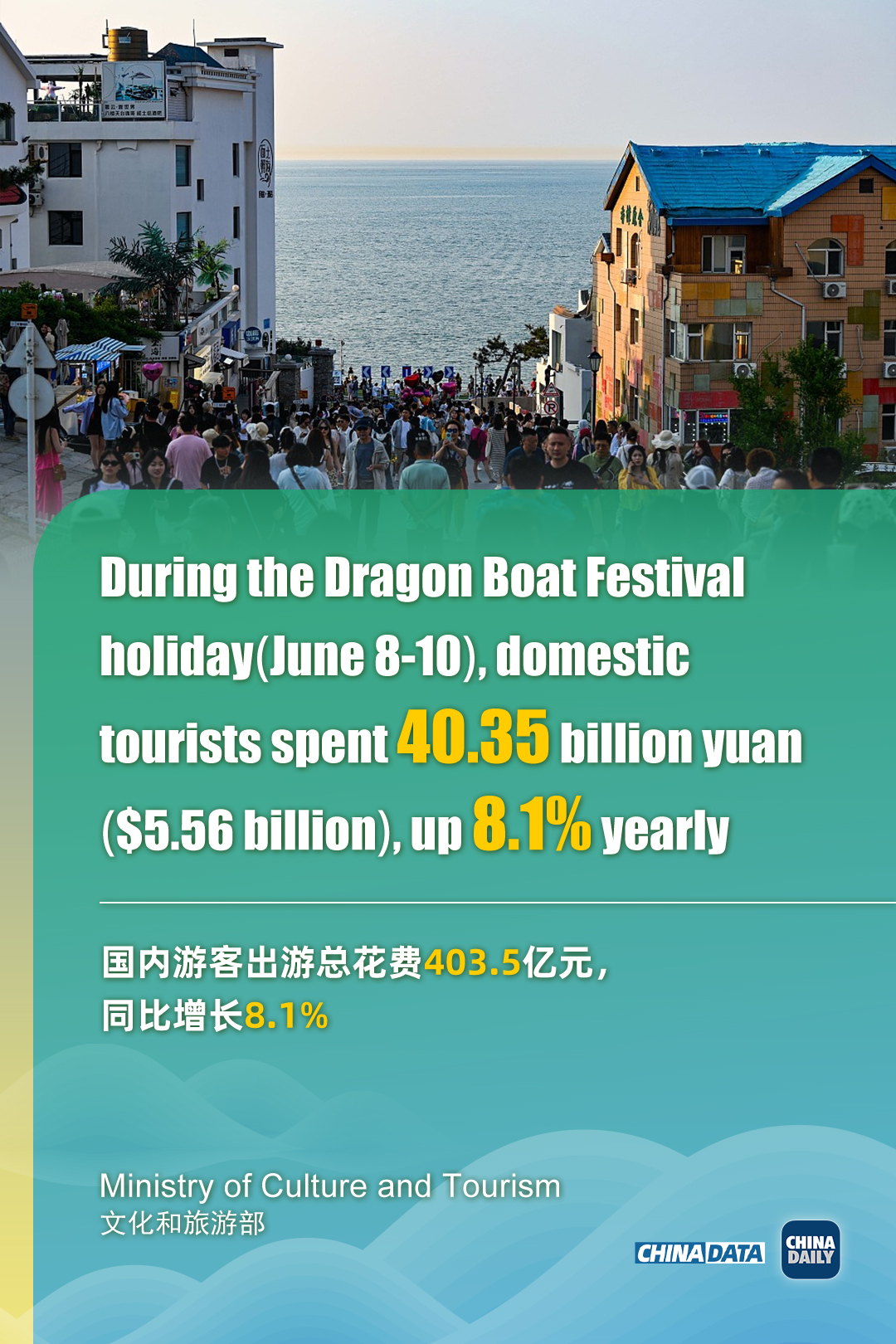 China's consumption in tourism, catering, retail and entertainment rose during the three-day Dragon Boat Festival holiday that ended on Monday, underscoring the country's economic vitality and resilience.