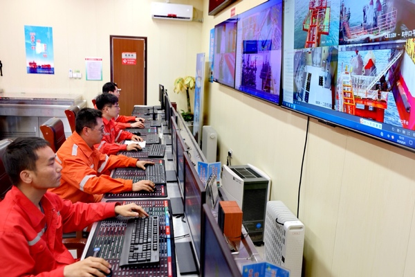 Staff members of the Chengdao No 1 central platform of Shengli offshore oil field work at a central control room, in Dongying, Shandong province, June 4, 2024. [Photo by Wang Jing/chinadaily.com.cn]
