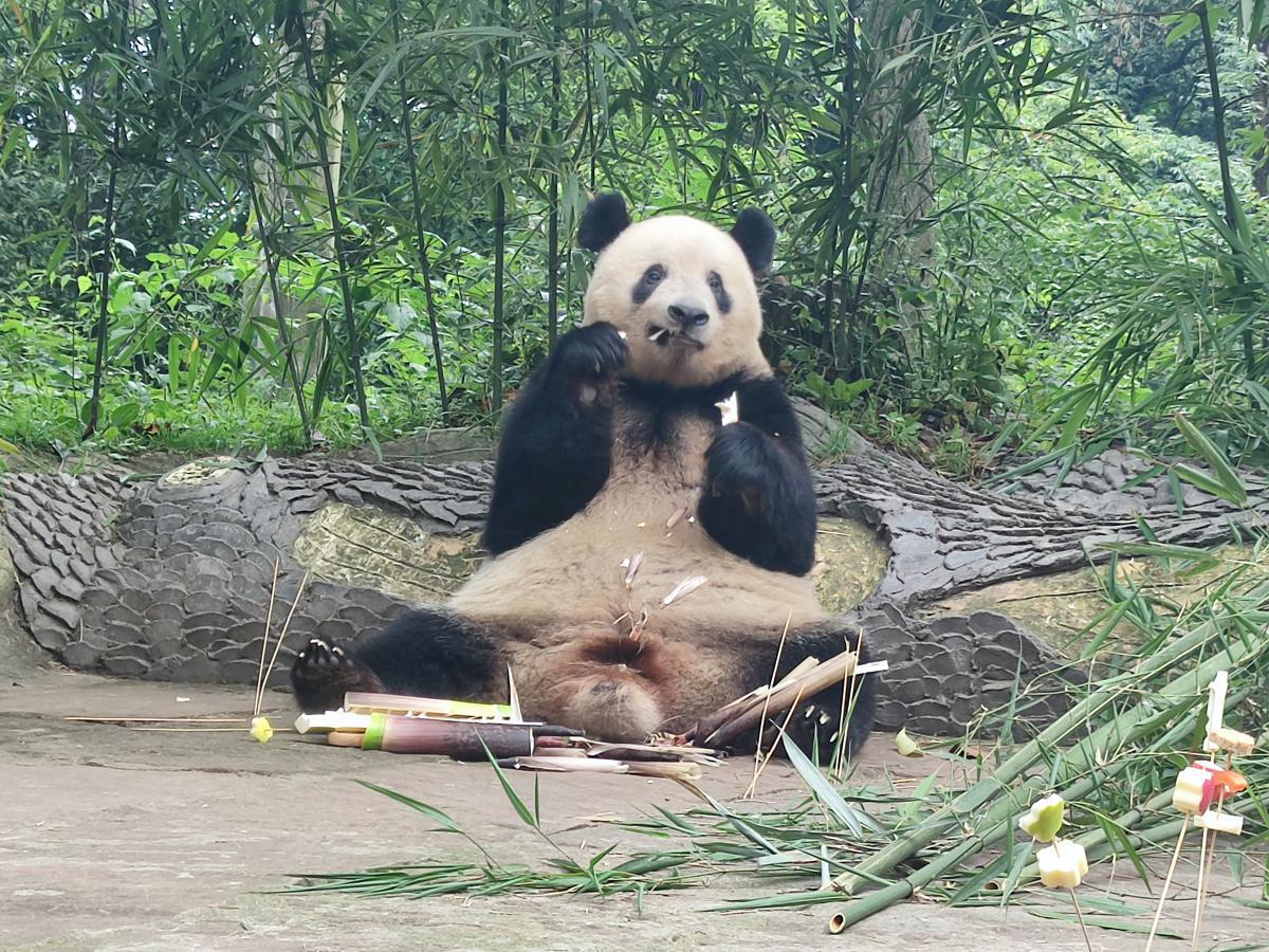 A surge of visitors gathered at the Bifengxia Giant Panda Base in Ya'an, Southwest China's Sichuan province, on Wednesday morning to celebrate the seventh birthday of Xiang Xiang, a Japan-born female giant panda. [Photo by Peng Chao/chinadaily.com.cn]