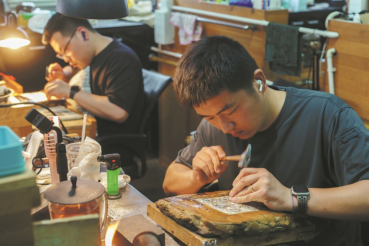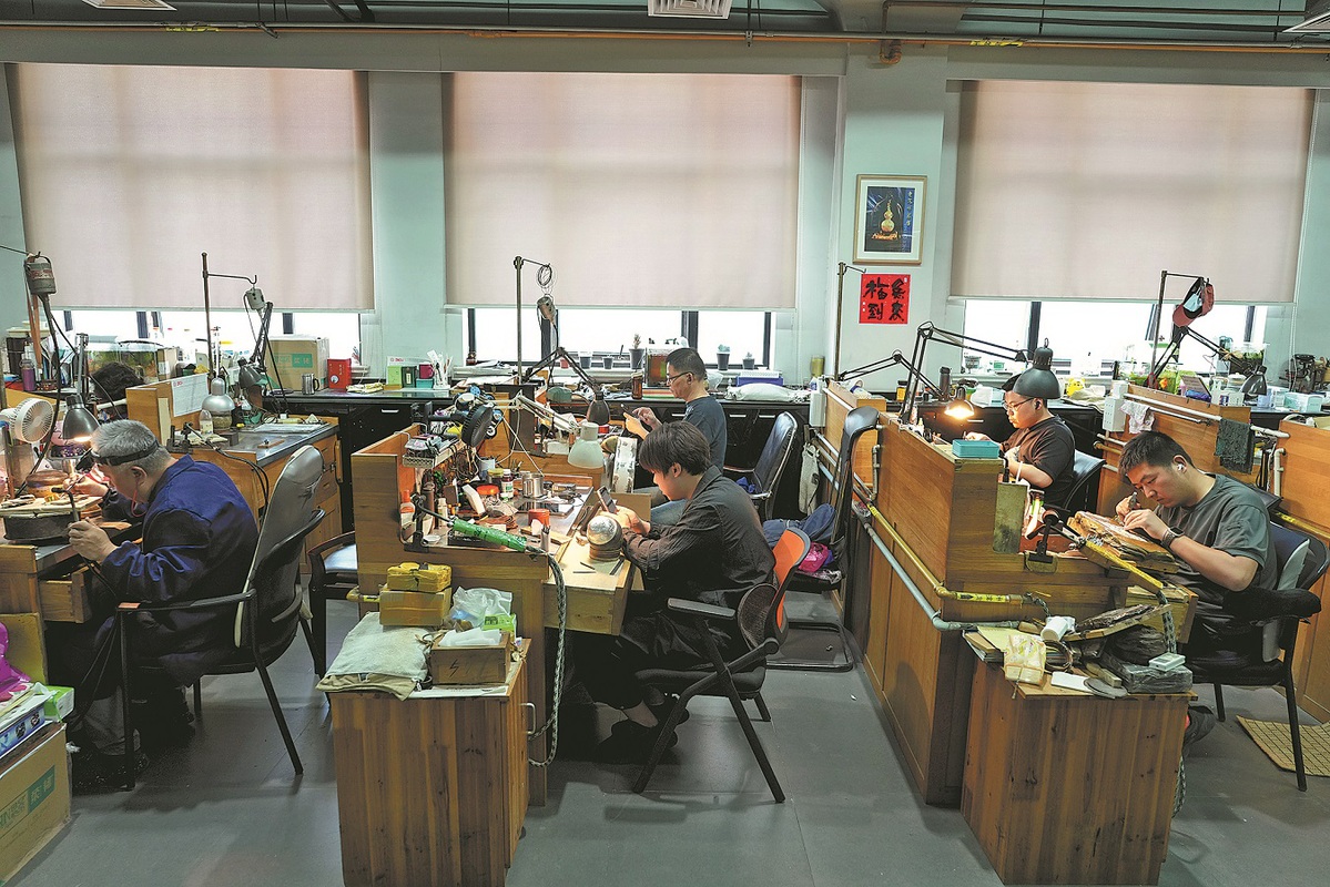 The gold- and silver-processing craftsmanship of Lao Feng Xiang, a time-honored brand with a history dating back 176 years, is one of China's intangible cultural heritages.