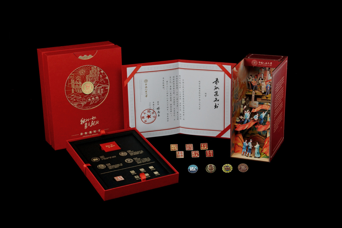 Renmin University of China recently also released a new version of its 2024 acceptance letters, featuring a three-dimensional boxlike design with gold foil on the surface depicting iconic buildings from different historical periods of the university.