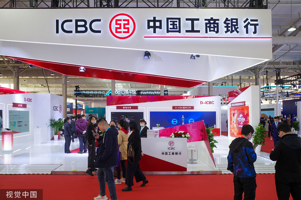 A booth of Industrial and Commercial Bank of China at an expo held in Beijing, April 25, 2023. [Photo/VCG]