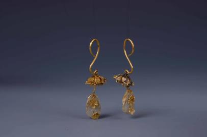 A pair of gold earrings embedded with jade depicting motifs of butterflies and plum blossoms, from the collection of the Qichun County Museum [Photo/Official WeChat account of the Shenzhen Museum]