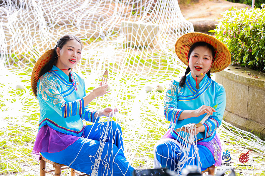 A display area for carving techniques, performances of Dongshan narrative poems and other intangible cultural heritage is set up at the opening ceremony on June 18, 2024. [Photo provided to chinadaily.com.cn]