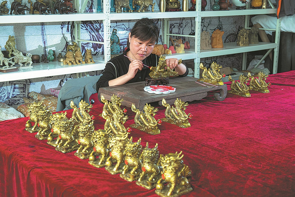 An inheritor works at the Nie family bronze casting workshop in Feicheng, Shandong province, in April. LIU SHUI/XIE JIUJIANG/FOR CHINA DAILY
