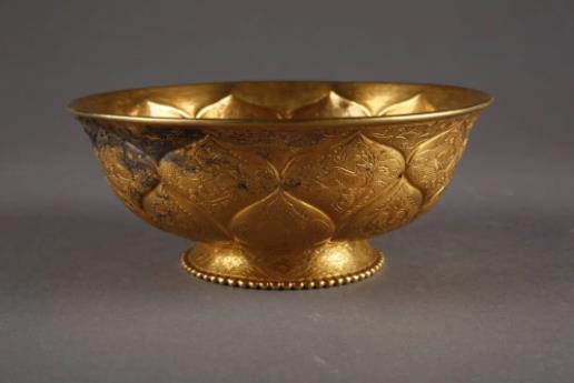 Gold bowl with mandarin duck and lotus petal motifs, Tang Dynasty, from the collection of the Shaanxi History Museum [Photo/Official WeChat account of the China National Silk Museum]