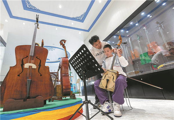 Ulji's workshop in Hohhot, Inner Mongolia autonomous region, hosts a variety of activities to help people better understand the morin khuur and other traditional instruments, as well as to train young enthusiasts. [Photo by Ding Genhou/For China Daily]