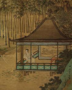 Detail of a scholar reclining against the railing in a waterside pavilion [Photo/Official WeChat account of the Wuhan Museum]