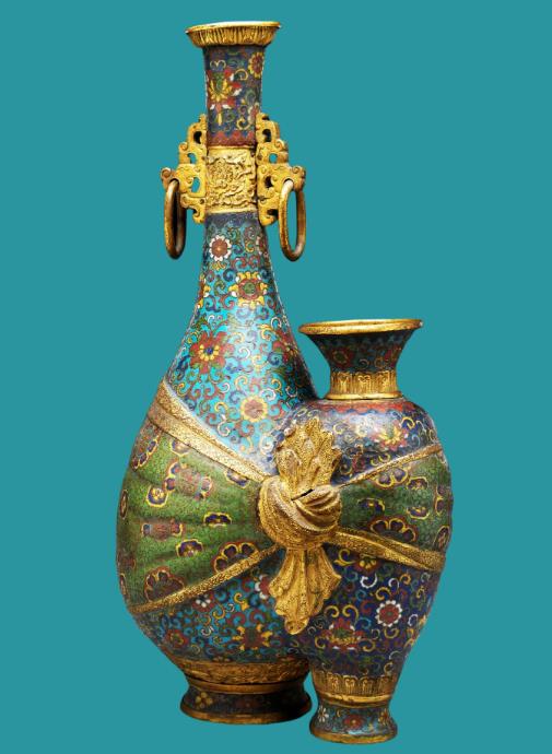 Cloisonné enamel double bundled vases with floral motifs, Qing Dynasty (1644-1911) [Photo/Official WeChat account of the Palace Museum]