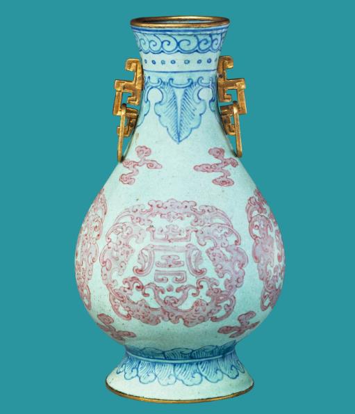 Painted enamel vase with motifs of five bats holding Chinese character shou (longevity) and two movable rings, Qing Dynasty [Photo/Official WeChat account of the Palace Museum]