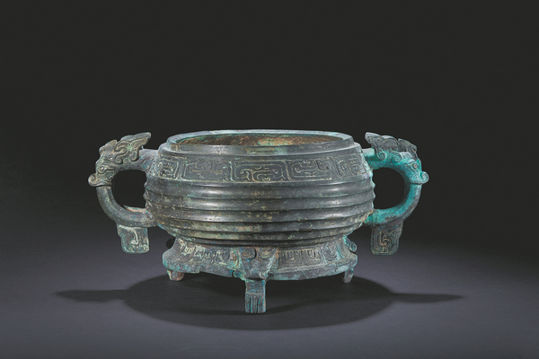 The vessel, known as gui, is 18 centimeters tall and 21 cm in diameter and weighs about 6 kilograms and is composed of a large bowl that has double handles in the design of a coil-nose animal face, resting on three feet shaped like those of an animal.