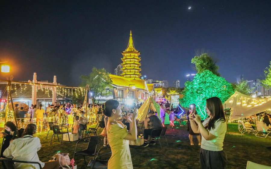 The Liyunhe (Li Canal) Cultural Corridor in Huai'an, East China's Jiangsu province, brims with hustle and bustle on summer evenings. [Photo provided to chinadaily.com.cn]