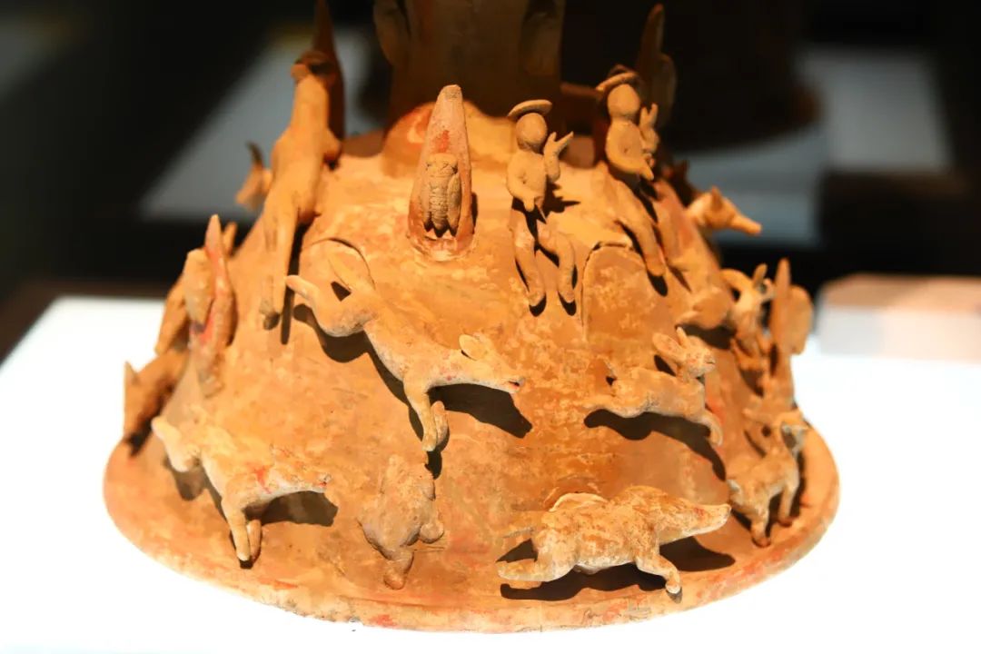 Detail of the lamp base decorated with musicians and animals [Photo/Official WeChat account of the Luoyang Museum]