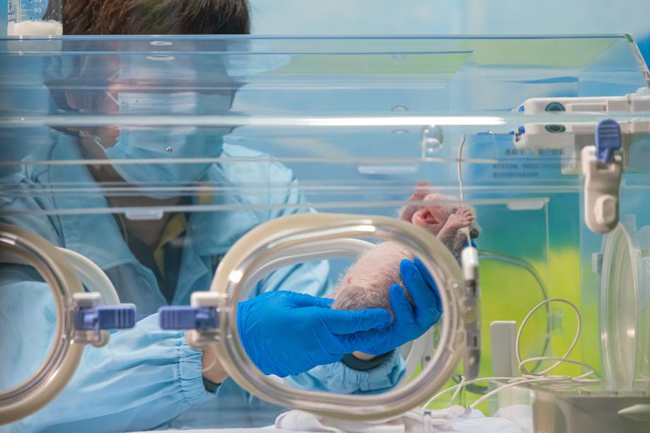 Giant panda Mengmeng, the eldest of the world's only panda triplets, has given birth to a female cub in Guangzhou, the capital of Guangdong province. [Photos provided to chinadaily.com.cn]