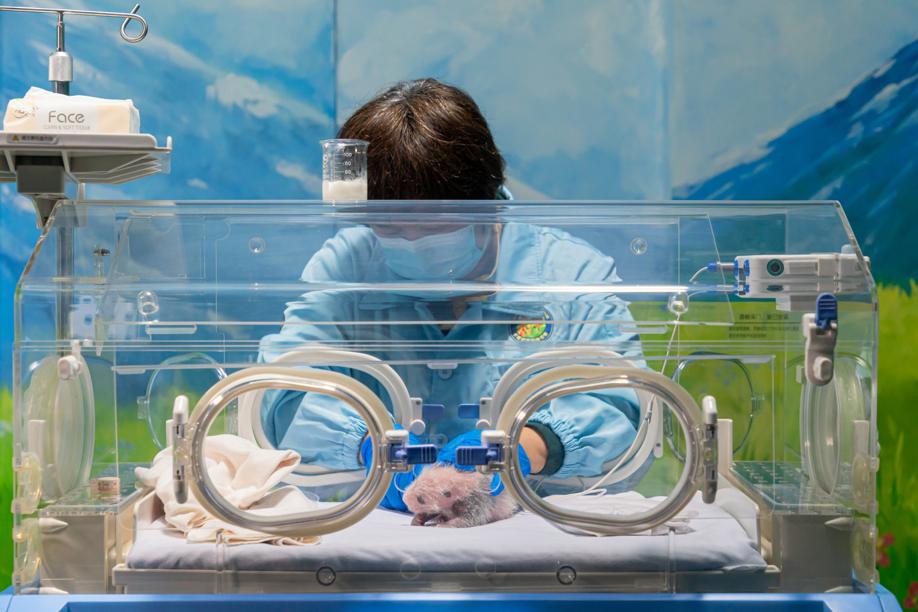 Giant panda Mengmeng, the eldest of the world's only panda triplets, has given birth to a female cub in Guangzhou, the capital of Guangdong province. [Photos provided to chinadaily.com.cn]
