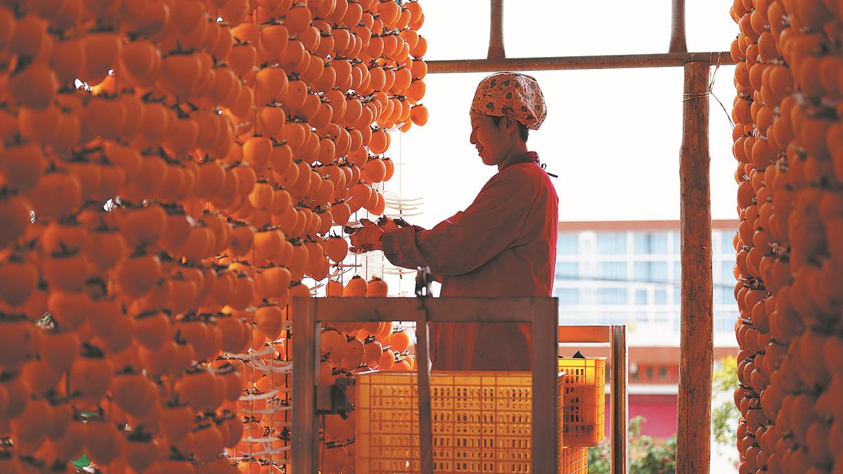 Approximately 7,100 tons of persimmons can be yielded annually in Yangjia, according to Qiao, and around 1,750 tons of dried persimmons are processed, contributing to an increase of about 5,000 yuan in the per capita income of the village of 545 households and almost 2,400 residents.