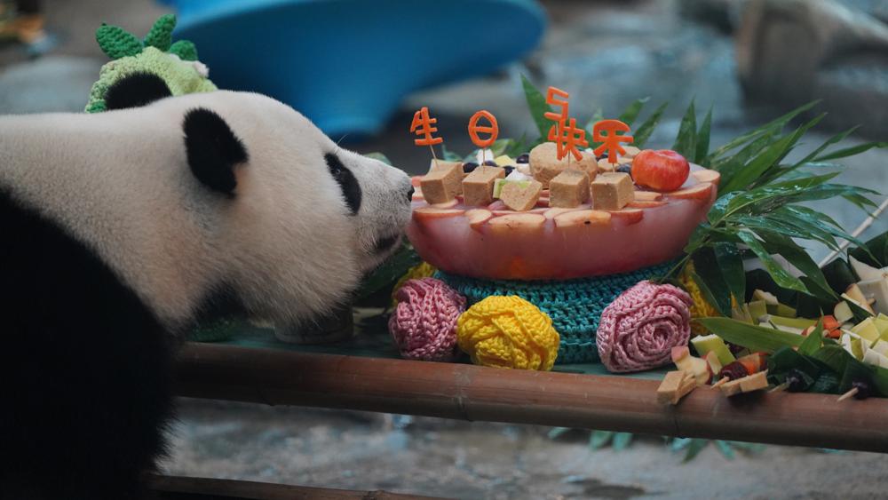 Animal keepers at a zoo in Wuhan, Hubei province, prepared special birthday food for a giant panda as it celebrated its fifth birthday on June 28.