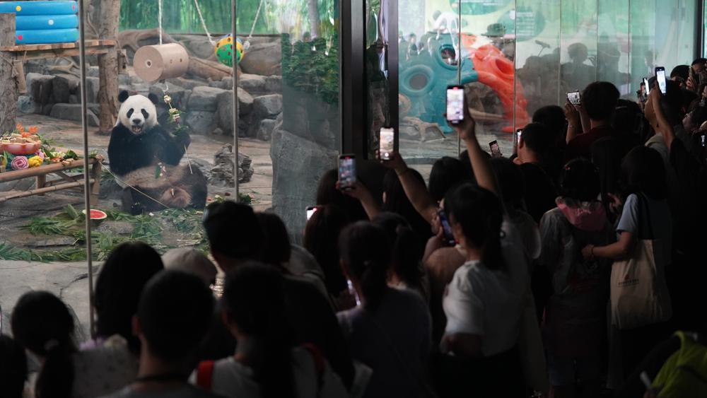 A giant panda named "Wulin" celebrated its fifth birthday at Wuhan Zoo in Wuhan, Hubei province, on June 28, 2024. [Photo by Li Ziyun /For chinadaily.com.cn]