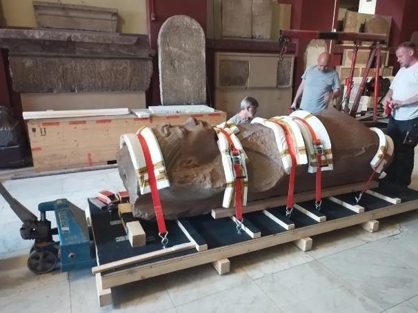A huge statue is packed and then transported to Shanghai. [Photo/Official WeChat account of the Shanghai Museum]