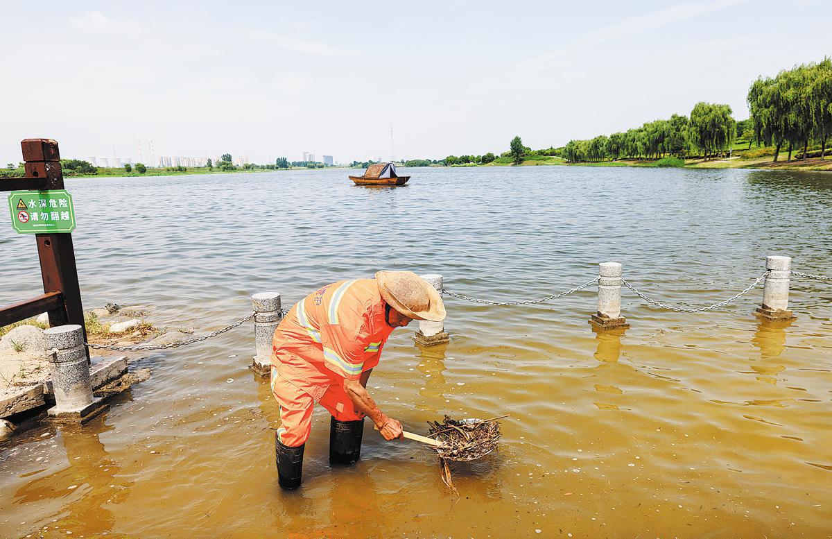 On average, about 50,000 cubic meters of reclaimed water is diverted into the lake every day. After flowing through the 1.5-million-cubic-meter lake, where a gradual process of natural purification is taking place, the water runs into the Weihe.