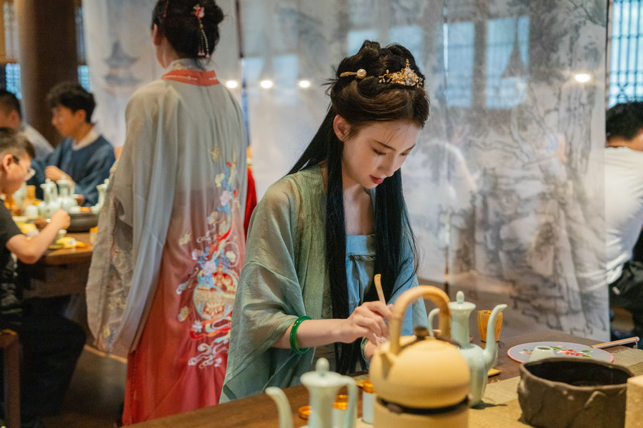 Tourists could immerse themselves in the lifestyles of ancients from the South Song period (960-1279) in the Puyuan scenic area in Zhejiang province from June 28 to Aug 31. [Photo provided to China Daily]