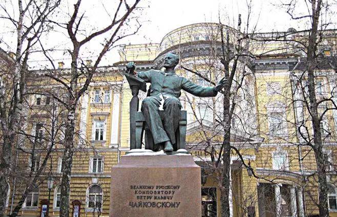 A picture of the Moscow Conservatory campus, featuring the bronze statue of the great Russian musician Pyotr Ilyich Tchaikovsky. [Photo provided to chinadaily.com.cn]