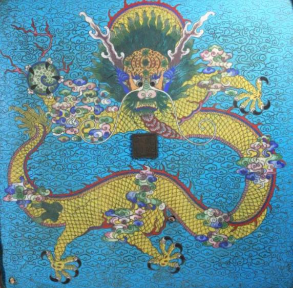 The dragon motif on the base of the cloisonné enamel chest denotes its royal ownership. [Photo/Official WeChat account of the Shenyang Palace Museum]