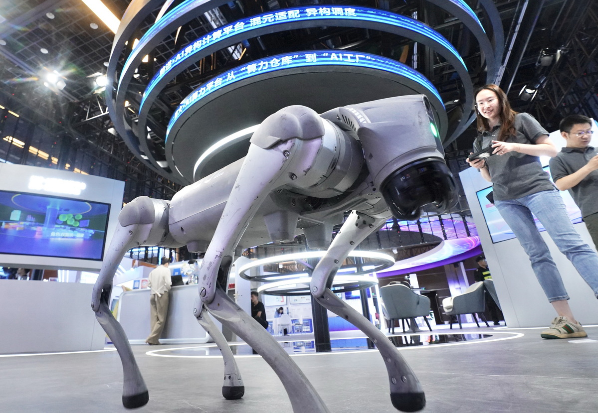 A robot dog on display at the Global Digital Economy Conference 2024, which kicked off on Tuesday in Beijing. CHENG GONG/FOR CHINA DAILY