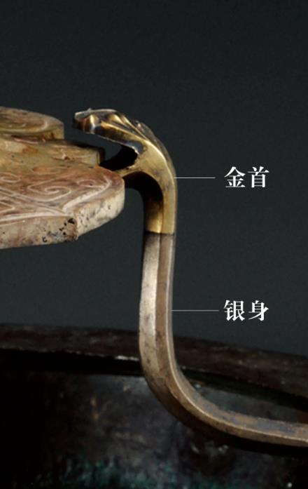 Detail of the small reptile with a golden head and a silver body, decorating the jade goblet [Photo/Official WeChat account of the Nanyue King Museum]