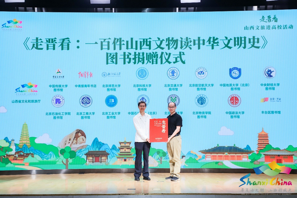 A new book detailing 100 cultural relics in Shanxi province is donated to the Communication University of China at the event. [Photo provided to chinadaily.com.cn]