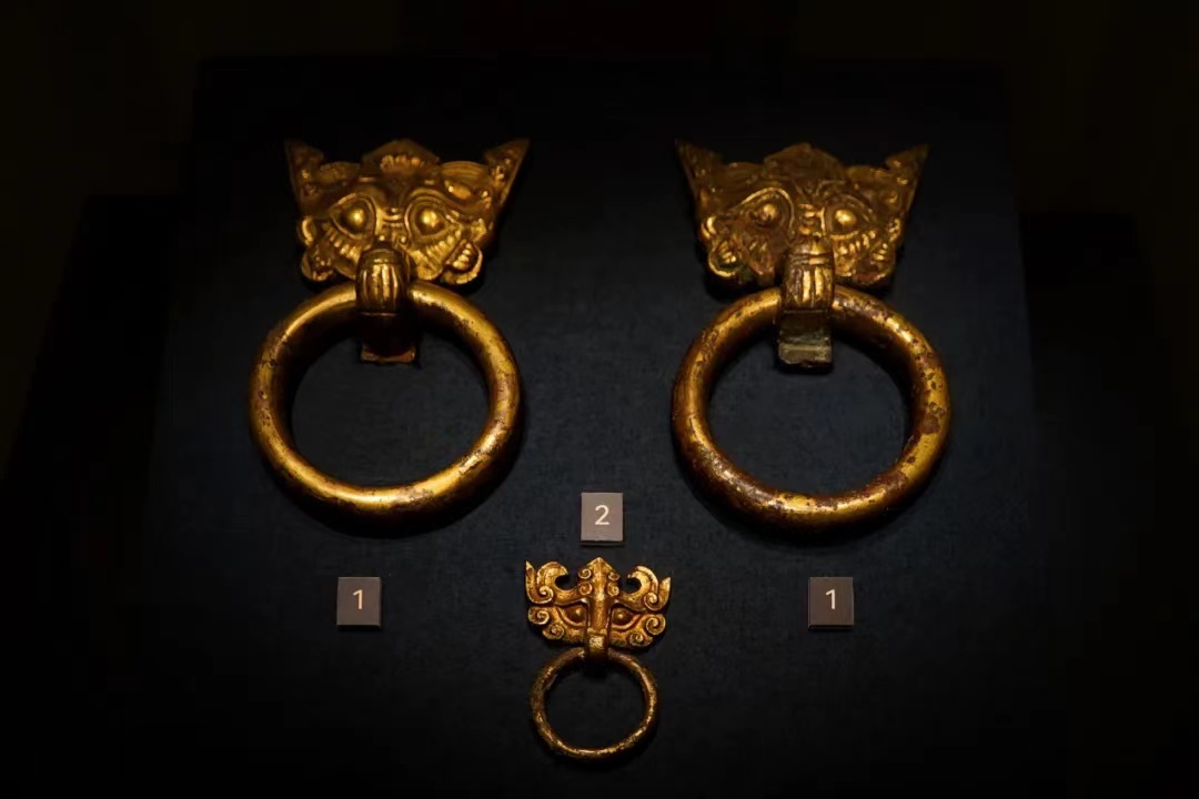 Gilded bronze beast masks holding rings [Photo/Official WeChat account of the Minhang Museum]