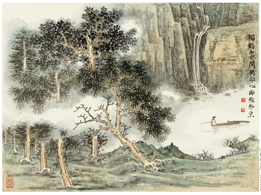 Wang Xingang's landscape paintings on show at the Art Museum of China National Academy of Painting. [Photo provided to China Daily]